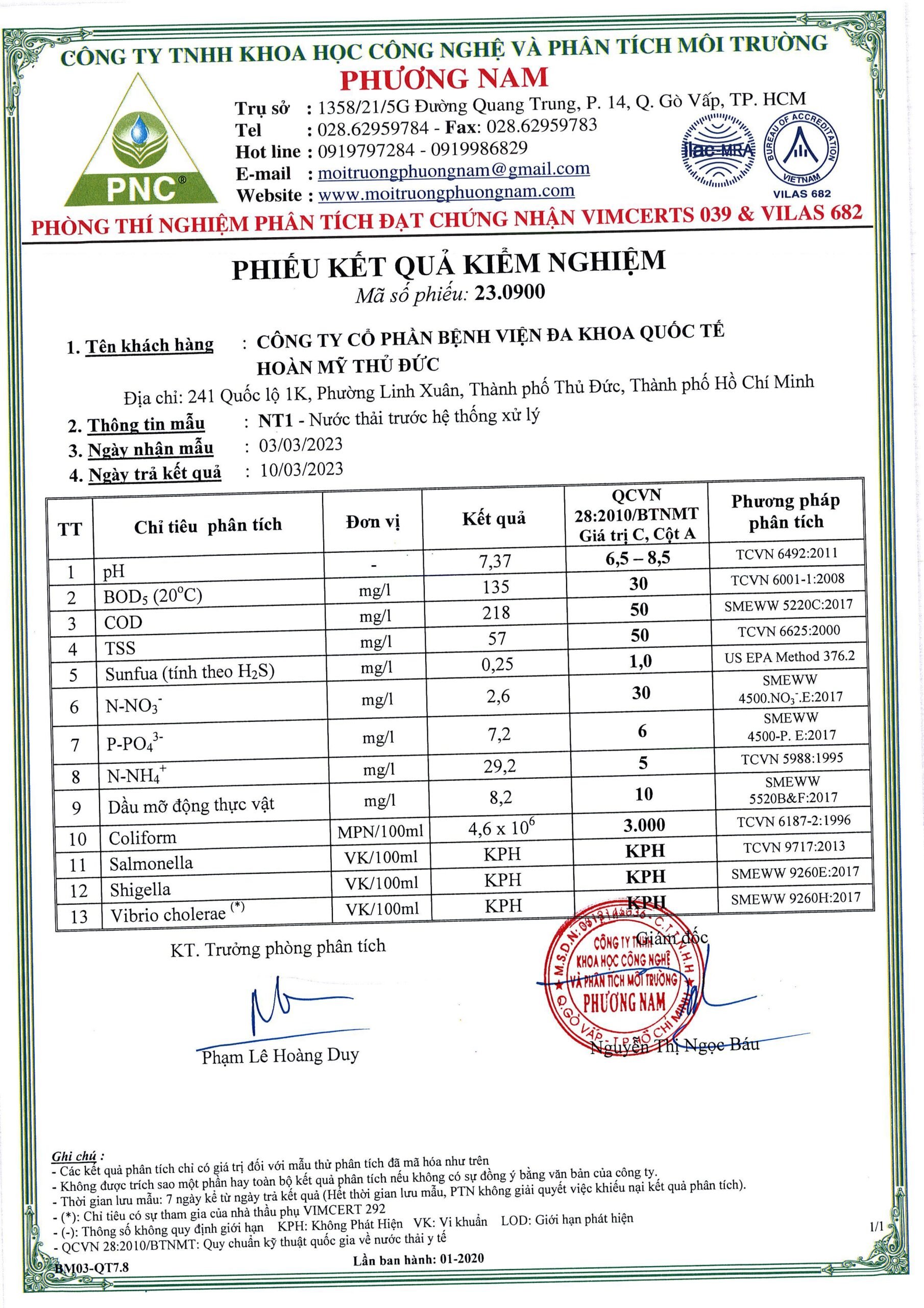 Kết quả quan trắc học quý I – 2023 – Bệnh viện Hoàn Mỹ Thủ Đức