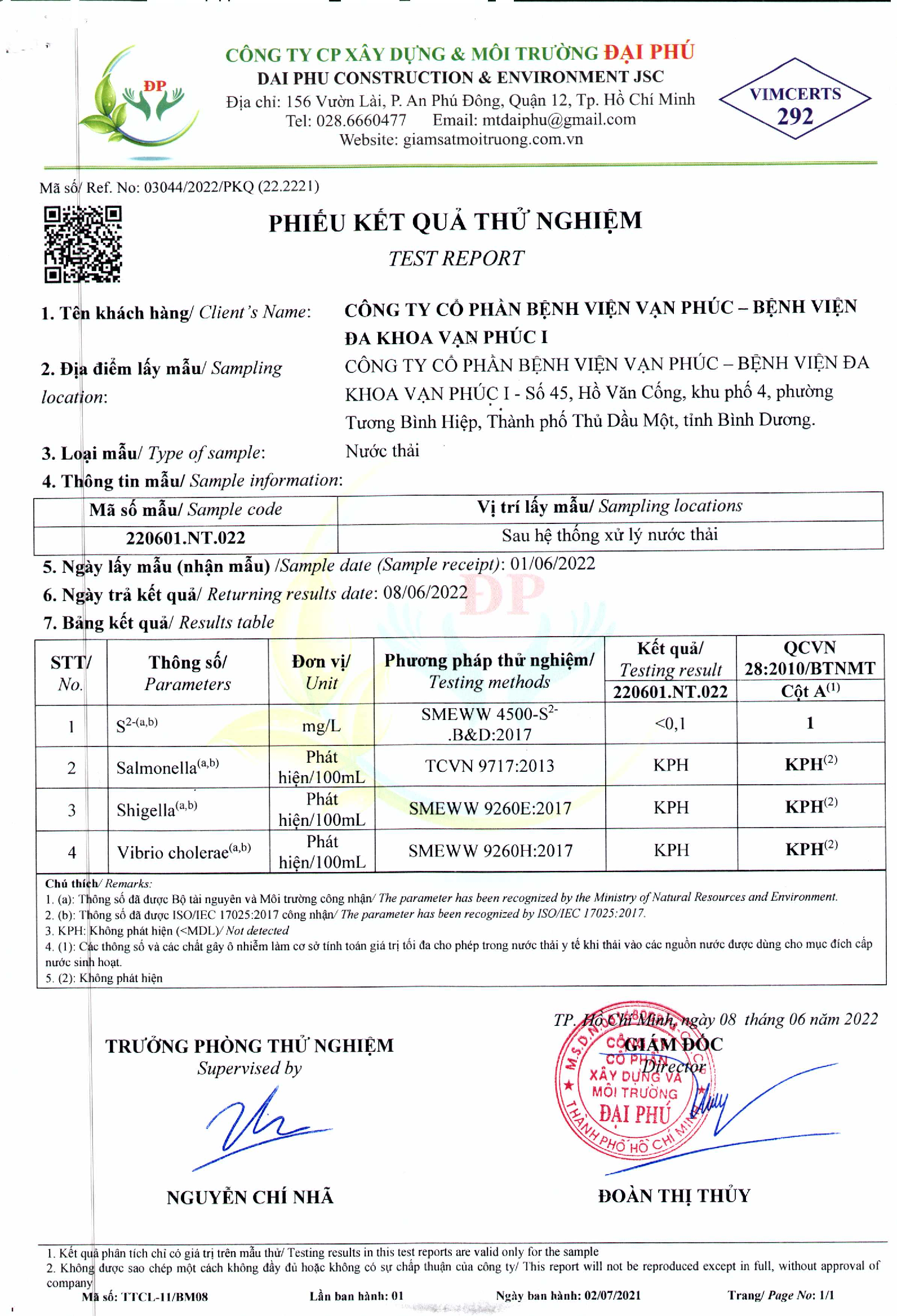 Kết quả quan trắc học quý II – 2022 Bệnh viện Hoàn Mỹ Bình Dương